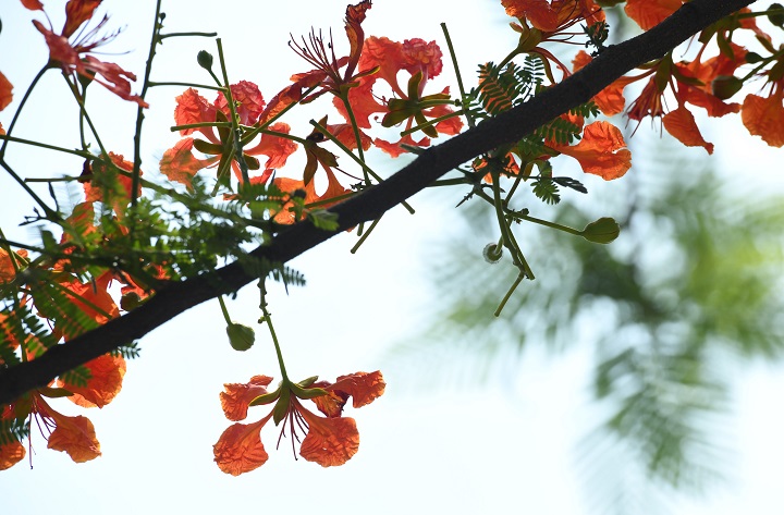 • গ্রীষ্মের এই নিস্প্রাণ রুক্ষতা ছাপিয়ে প্রকৃতিতে কৃষ্ণচূড়া নিজেকে মেলে ধরছে আপন মহিমায়। আলোকচিত্রী: জাকির হোসাইন
